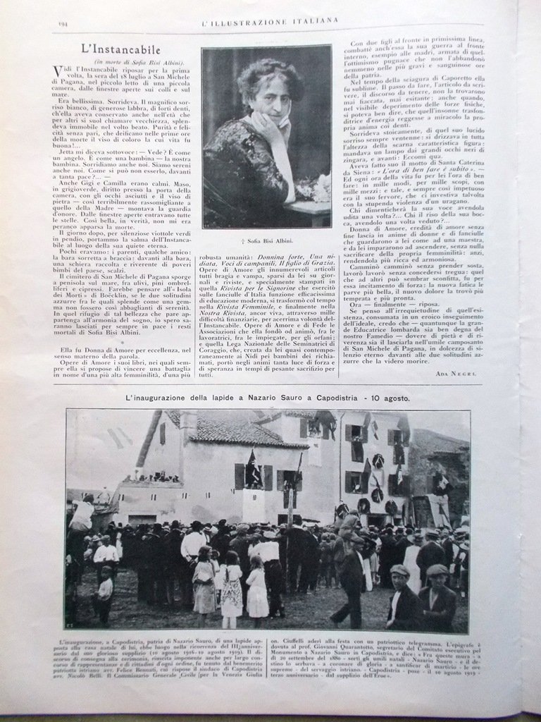 L'Illustrazione Italiana 24 Agosto 1919 Inchiesta Caporetto Hackel Carnegie Bari