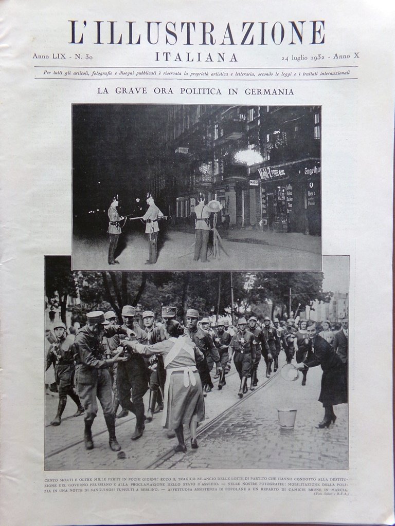 L'illustrazione Italiana 24 Luglio 1932 Fawcett Palmira Tumulti Berlino Za-Bum