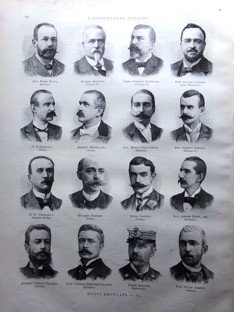 Nuovi deputati (II): Fermo Rocca, Eugenio Brunetti, Annibale Lucernari, Giacomo Cortese, G. Girardini, Alfredo Bertesi, Marco Collacchioni, Alberto Ghillini, G.B. Cereseto, Edoardo Pizzorni, Guido Cagnola, Adelmo Sichel, Alfredo Codacci Pisanelli, Vittorio Emanuele Orlando, Nabor Sogliani, Giulio Alessio
