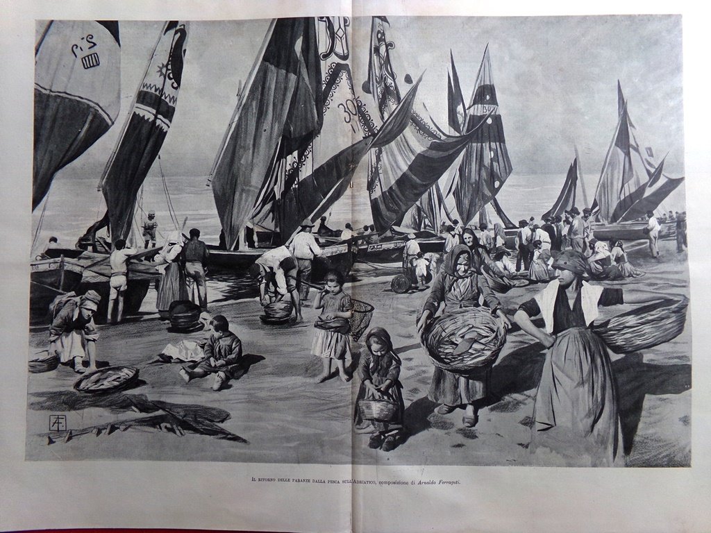 Il ritorno delle paranze dalla pesca sull'Adriatico (Arnaldo Ferraguti) (stampa in 2 pagine)