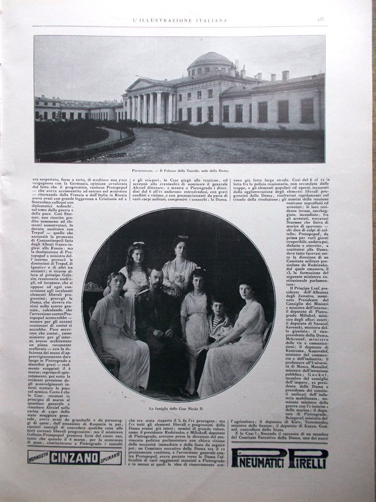 L'Illustrazione Italiana 25 Marzo 1917 WW1 Rivoluzione Russa Nevskij Nicola Zar