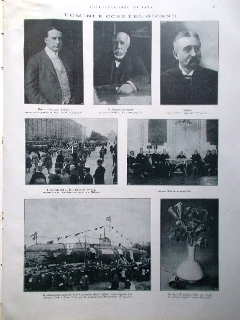 Uomini e cose del giorno - Clemenceau, Pichon, Gallenga Stuart, il sottomarino tedesco UC5