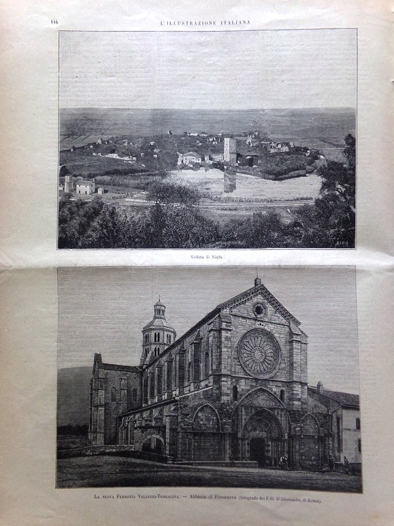 La nuova ferrovia Velletri-Terracina: abbazia di Fossanova, veduta di Ninfa, Terracina, Velletri
