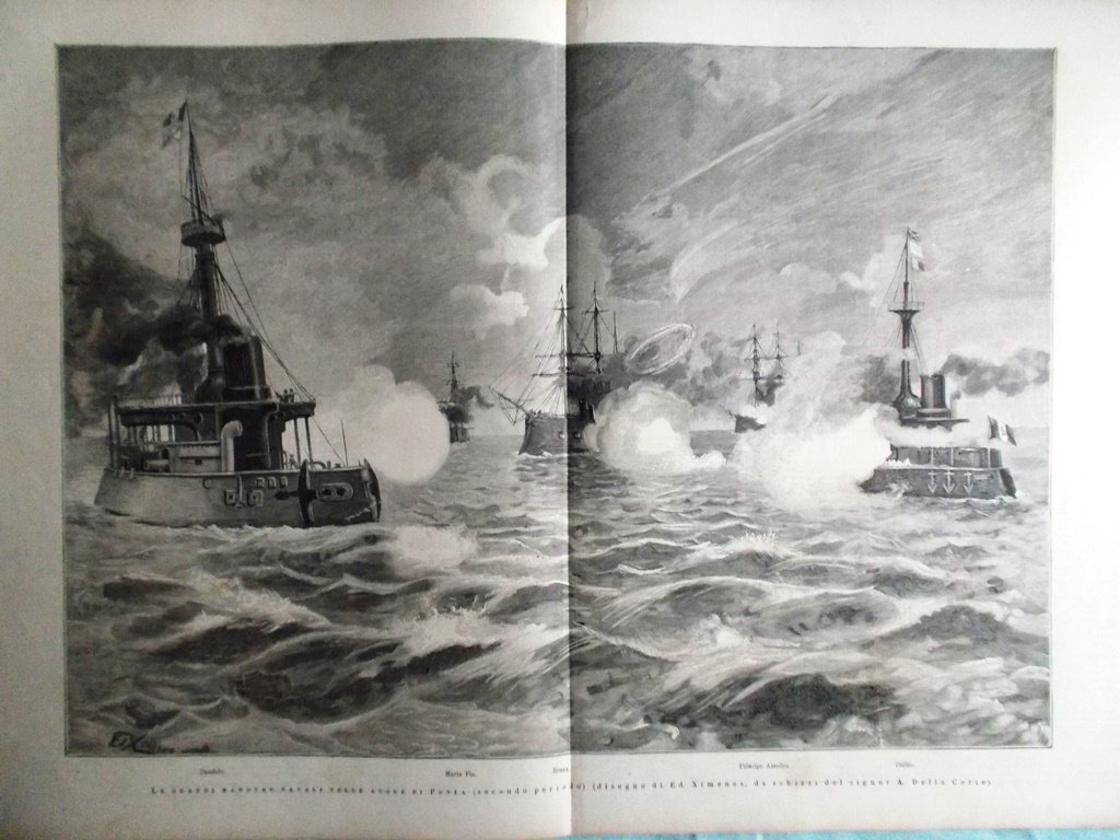 Le grandi manovre navali nelle acque di Ponza (Eduardo Ximenes) (Stampa a 2 pagine)