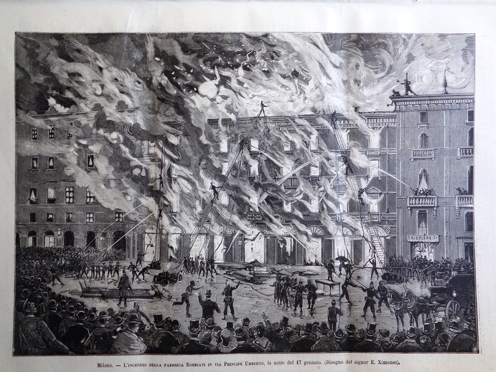 Milano: l'incendio della fabbrica Robbiati in via Principe Umberto, la notte del 17 gennaio (E. Ximenes)
