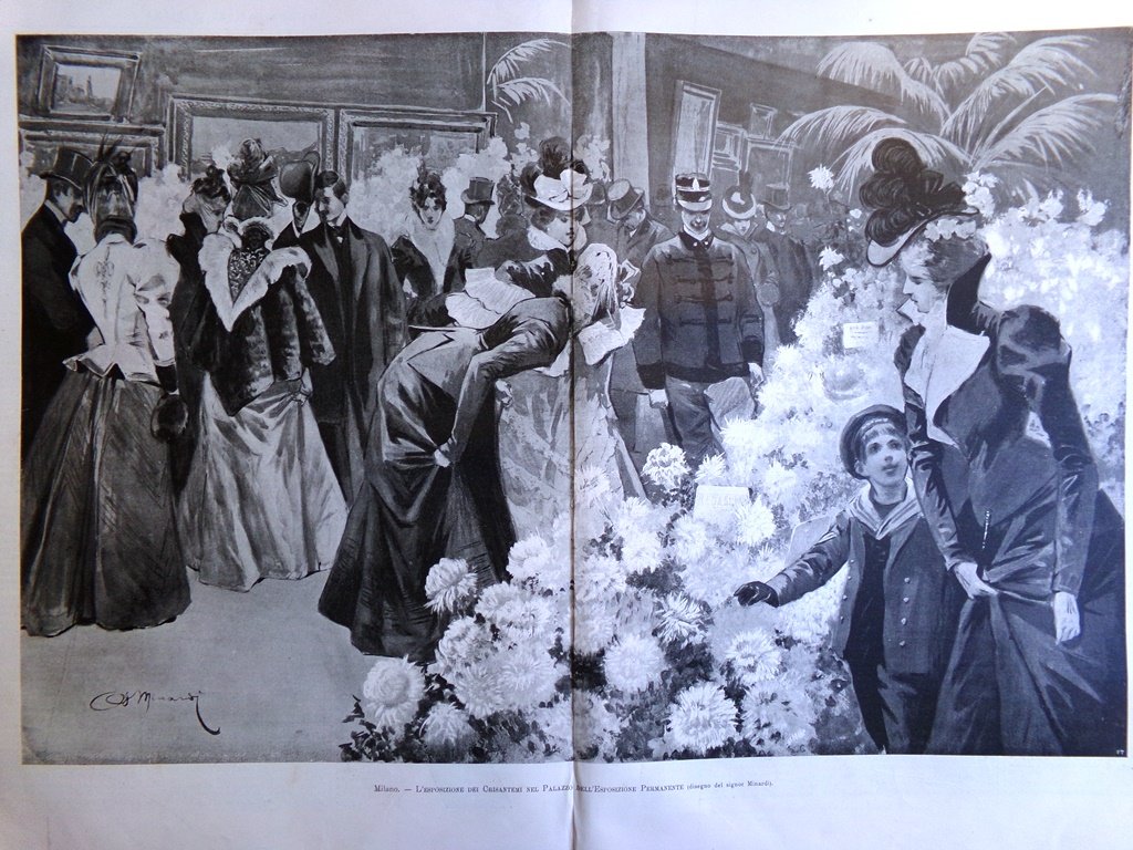 Milano: l'esposizione dei crisantemi nel palazzo dell'esposizione permanente (A. Minardi) (stampa in 2 pagine)