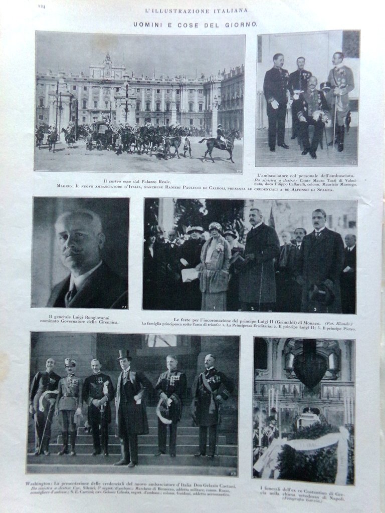 Uomini e cose del giorno: Luigi Bongiovanni, il nuovo ambasciatore d'Italia a Madrid Ranieri Paulucci, le feste per l'incoronazione di Luigi II di Monaco