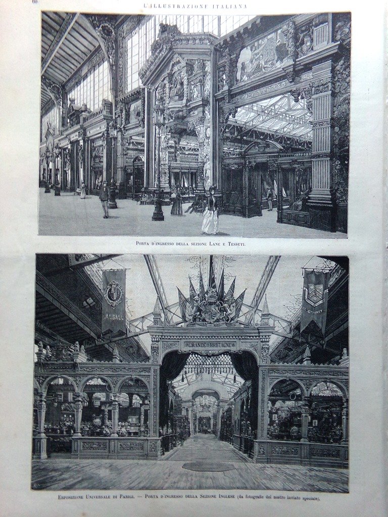 Esposizione di Parigi: porta d'ingresso della sezione inglese e della sezione lane e tessuti
