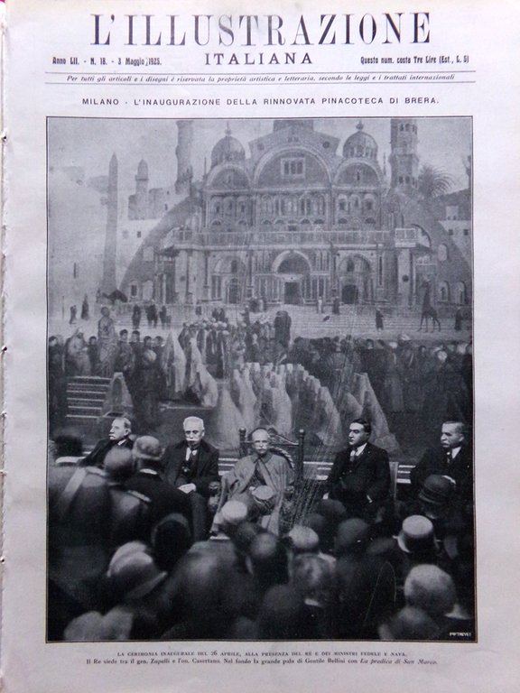L'Illustrazione Italiana 3 Maggio 1925 Pinacoteca di Brera Attentato Sofia Rodi | Periodici |