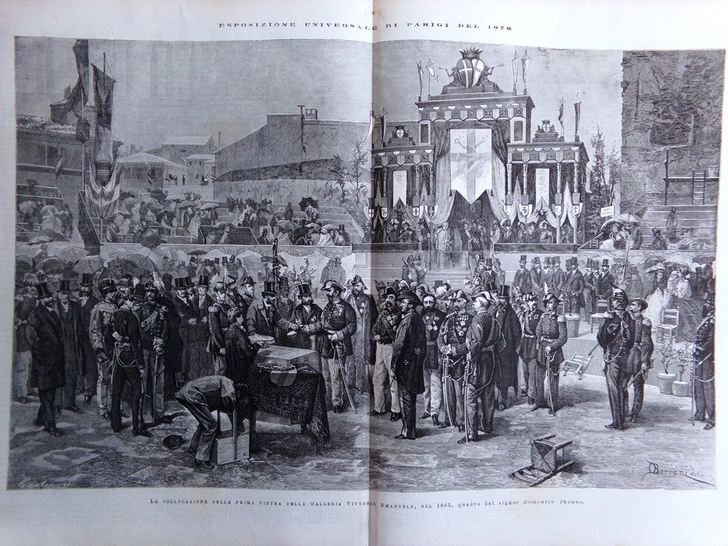 La collocazione della prima pietra della galleria Vittorio Emanuele nel 1865 (quadro di Domenico Induno) (Stampa a 2 pagine)