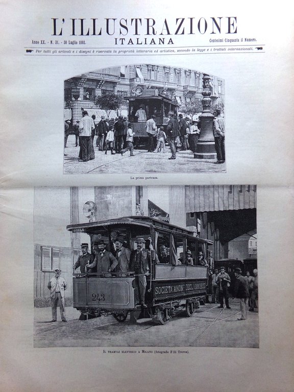 L'Illustrazione Italiana 30 Luglio 1893 Tramvai Sforza Re Siam Studena Pontebba