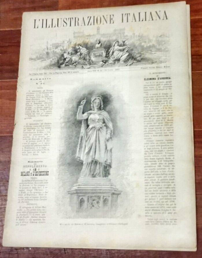 L'ILLUSTRAZIONE ITALIANA 31 luglio 1881 Monumento Eleonora D'arborea Giornale