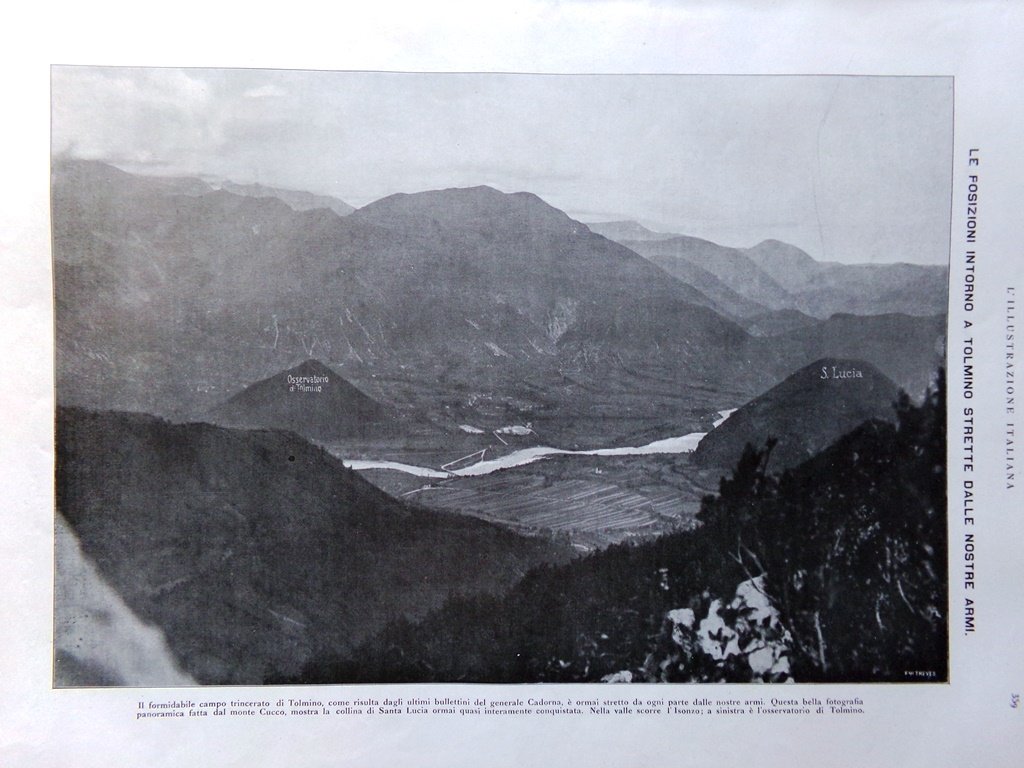 Le posizioni intorno a Tolmino strette dalle nostre armi