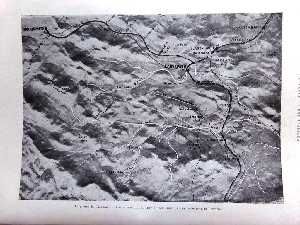 La guerra del Transvaal - carta plastica del teatro d'operazione per la liberazione di Ladysmith