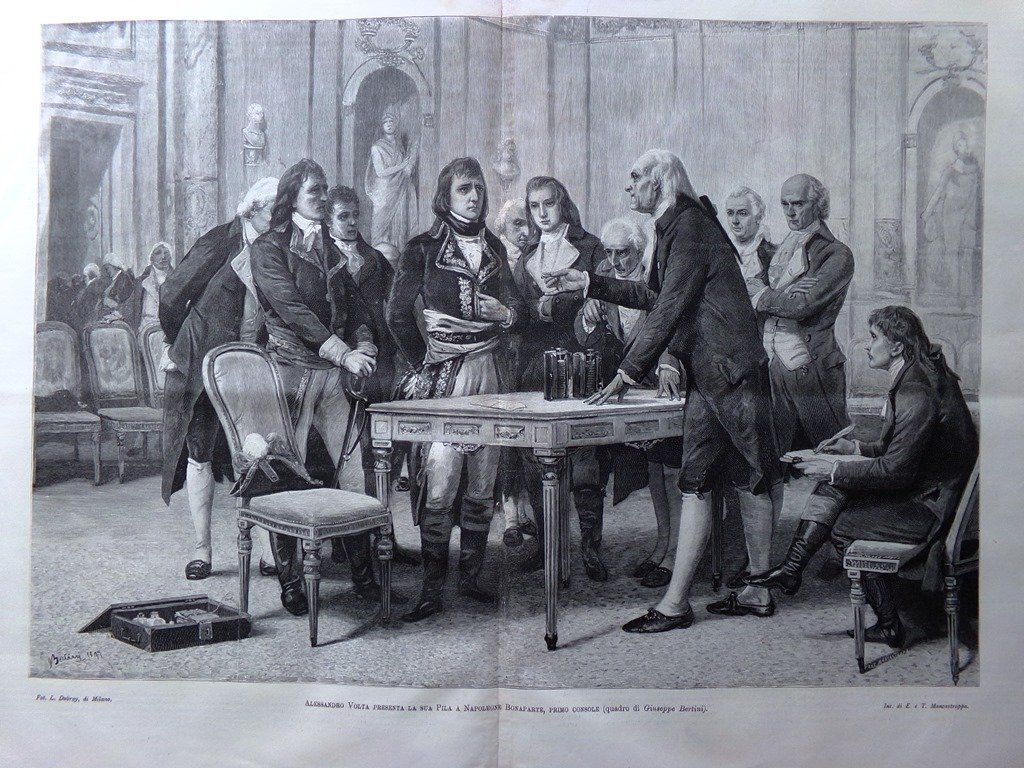Alessandro Volta presenta la sua pila a Napoleone Bonaparte (Giuseppe Bertini)
