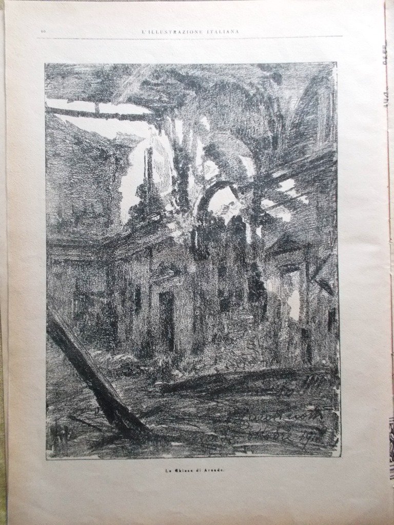 Pittori soldati al fronte: Innocente Cantinotti. Villa Berti a Nervesa, Chiesa di Arcade, un prigioniero (su cartoncino speciale)