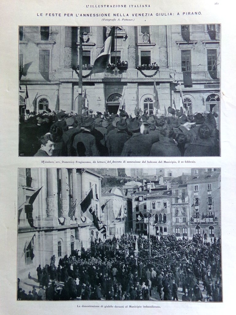 Le feste per l'annessione nella Venezia Giulia: a Pirano.