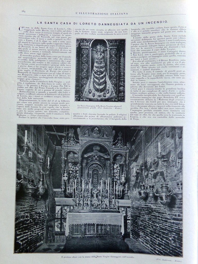 L'Illustrazione Italiana 6 Marzo 1921 Renato Fucini Pirano Incendio Loreto Roma