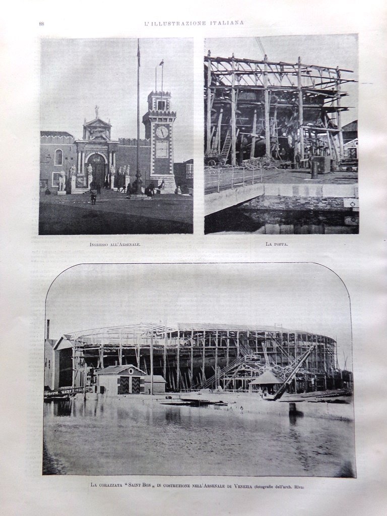 La corazzata Saint Bon in costruzione a Venezia (arch. Riva)
