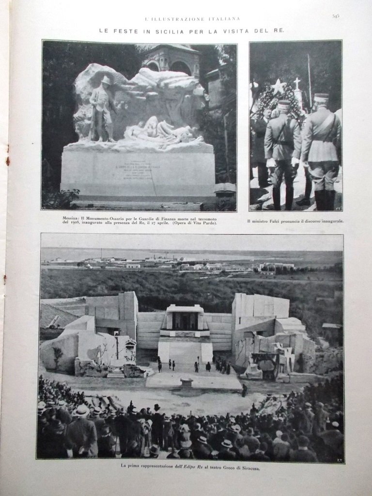 Le feste in Sicilia per la visita del Re - Messina, teatro Edipo di Siracusa