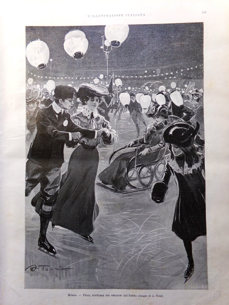 Milano: festa notturna sul ghiaccio all'arena (A. Terzi) (stampa)