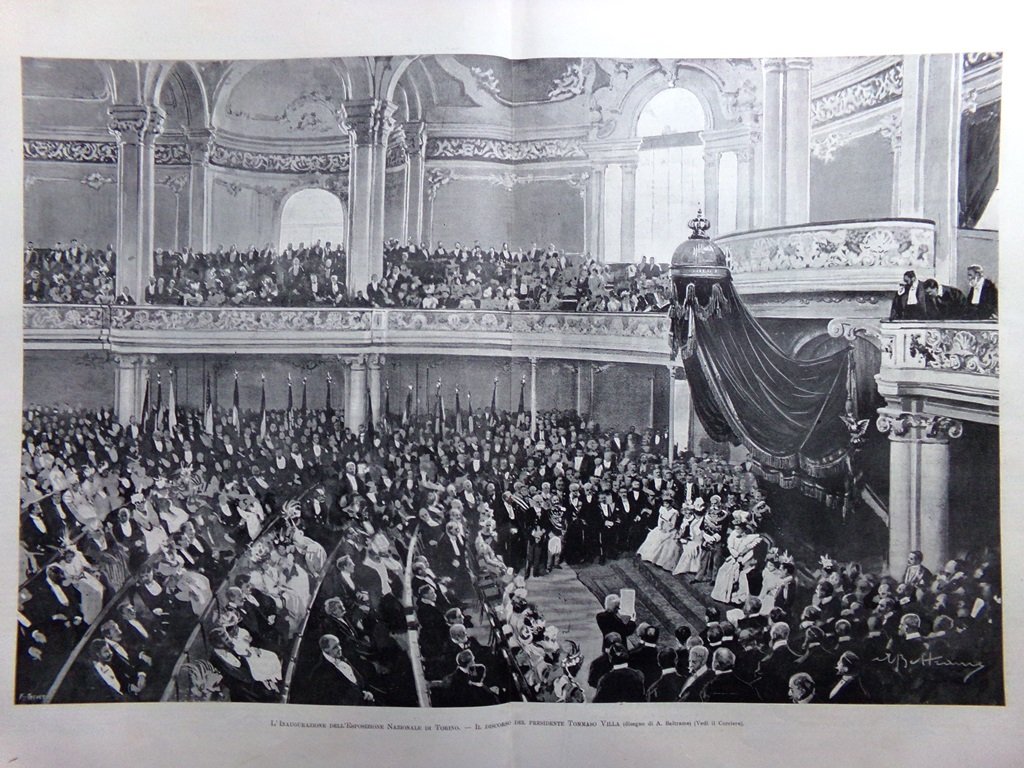 L'inaugurazione dell'esposizione nazionale di Torino: il discorso del presidente Tommaso Villa (Achille Beltrame) (stampa in 2 pagine)