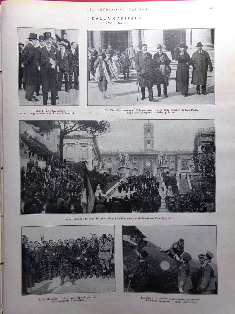 Dalla capitale: Mussolini da il primo colpo di piccone sull'austostrada Roma-Ostia, la celebrazione del 28 ottobre *