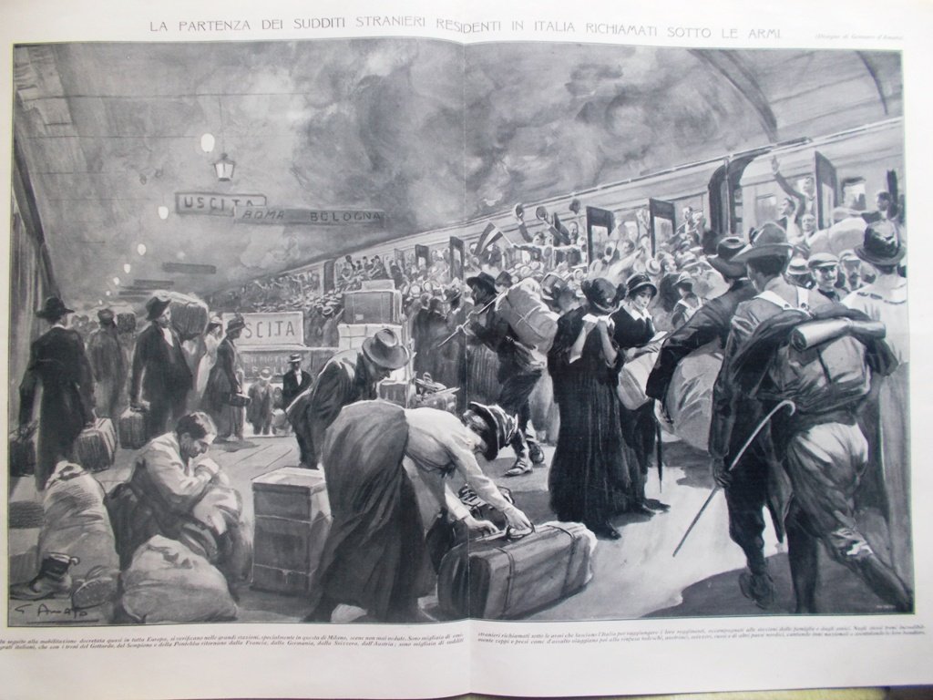 La partenza dei sudditi stranieri residenti in Italia richiamati sotto le armi.