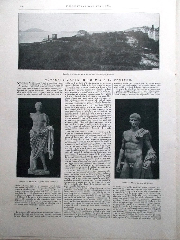 Scoperte d'arte in Formia e in Venafro.