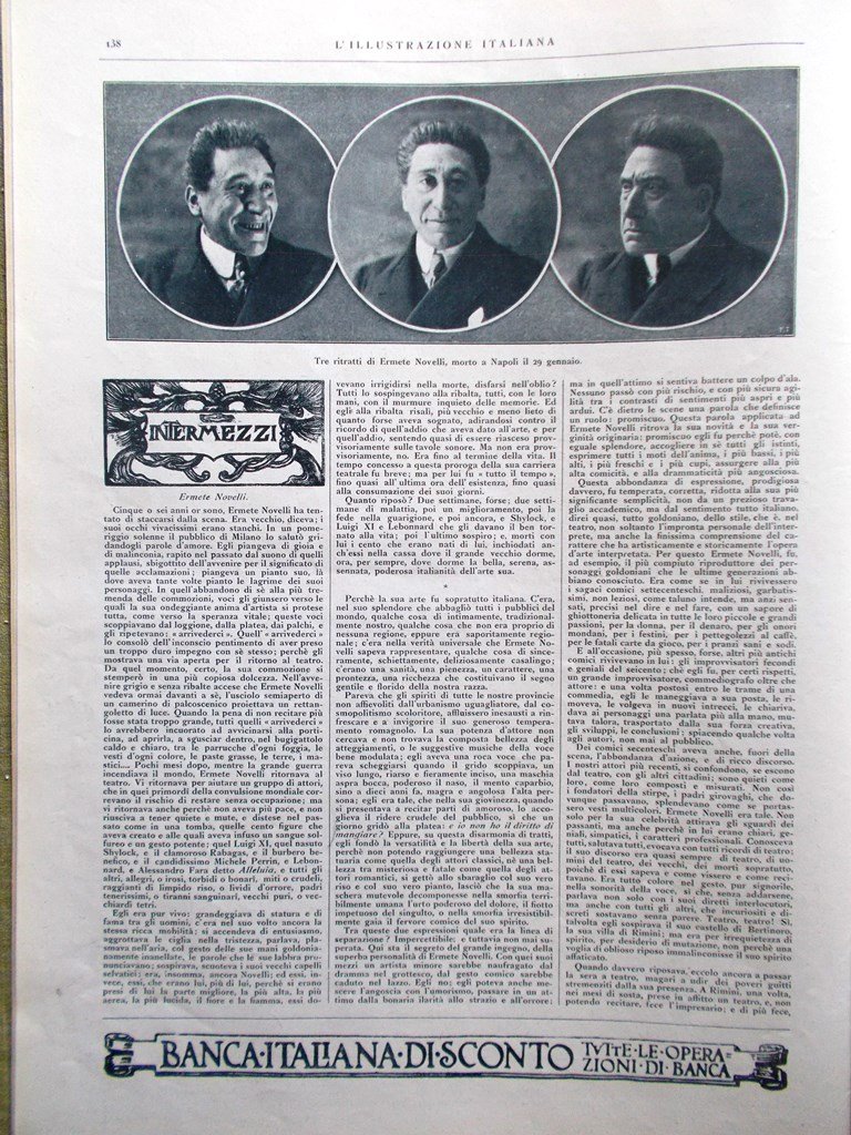L'Illustrazione Italiana 9 Febbraio 1919 Morte Ermete Novelli Pirandello Senussi