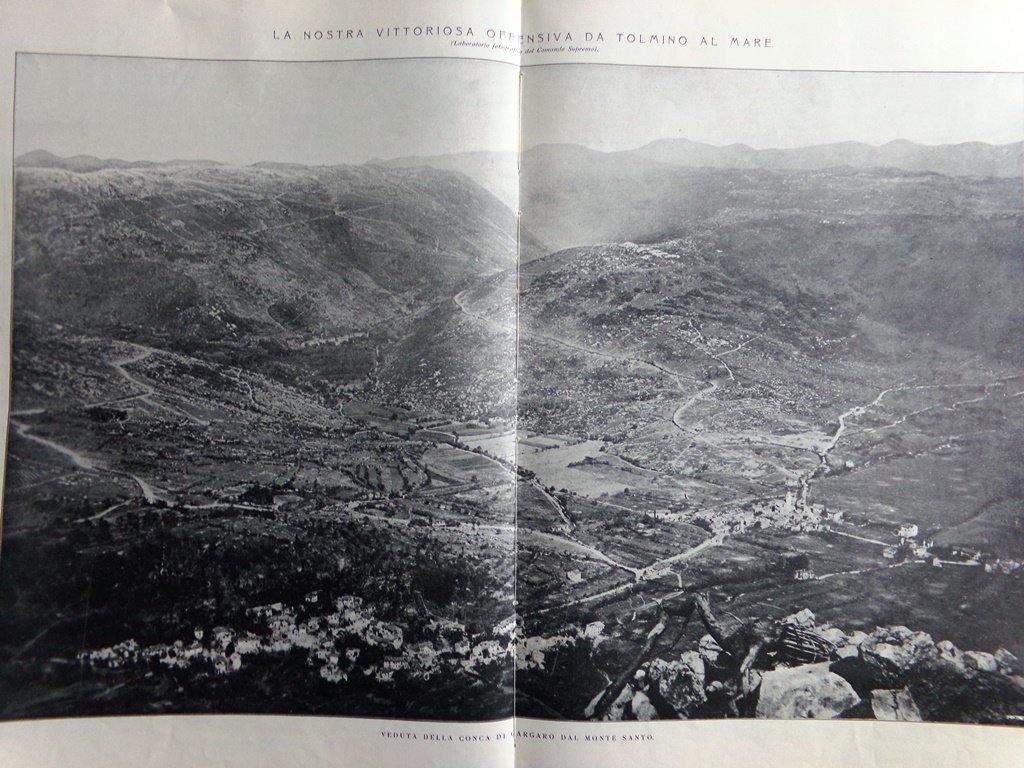La nostra vittoriosa offensiva da Tolmino al mare: veduta della conca di Gargaro (fotografia a 2 pagine)