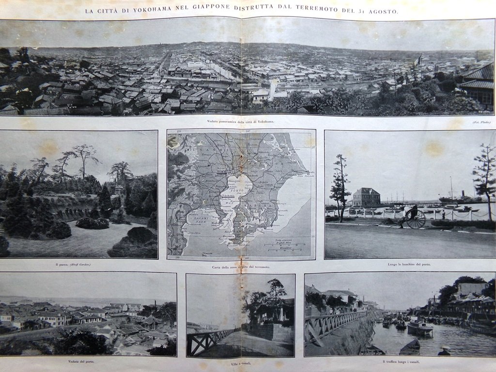 Tokyo, la capitale del Giappone distrutta dal terremoto del 31 agosto - la città di Yokohama (servizio con tante fotografie, anche con panorama della città in 2 pagine)