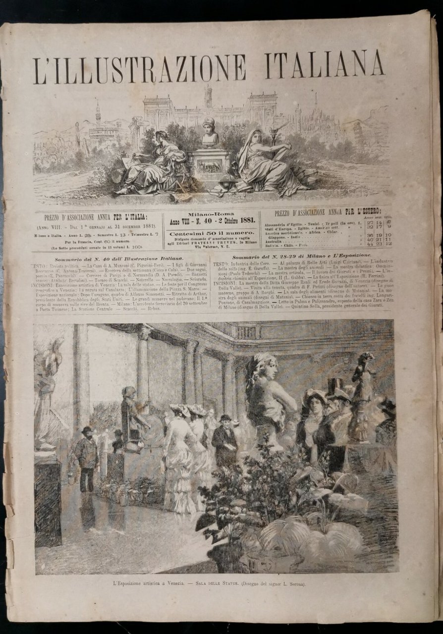 L'ILLUSTRAZIONE ITALIANA del 2 ottobre 1881 giornale antico Venezia esposizione
