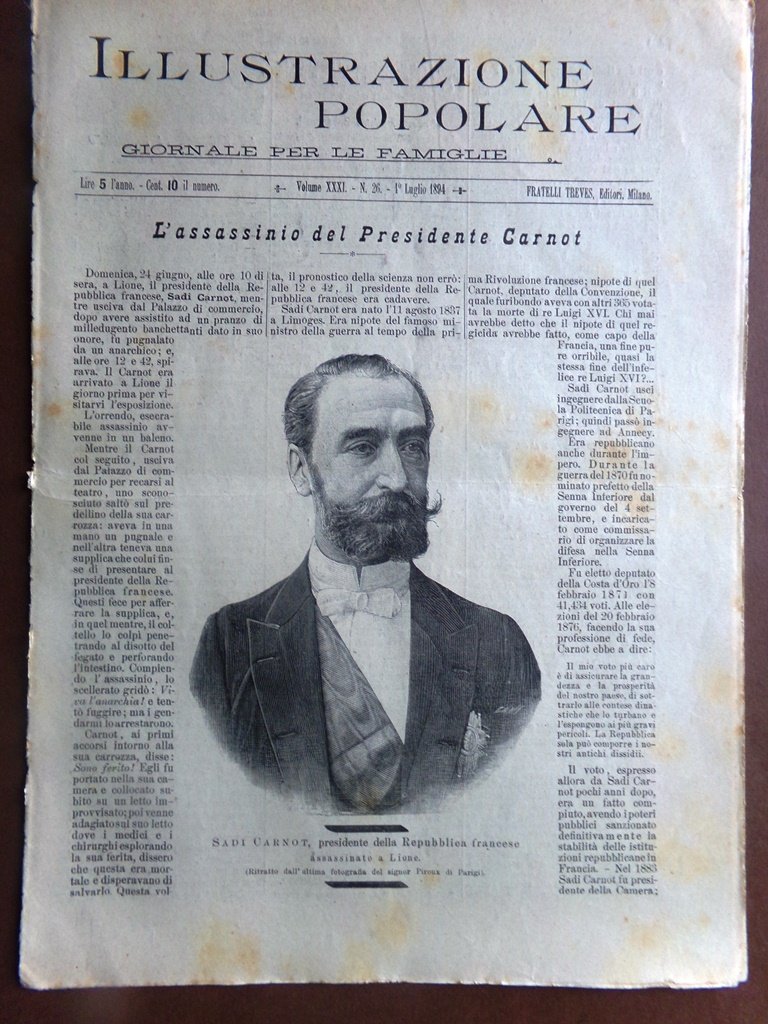 L'Illustrazione Popolare 1 Luglio 1894 Assassinio Carnot Crispi Bartoli Malattie