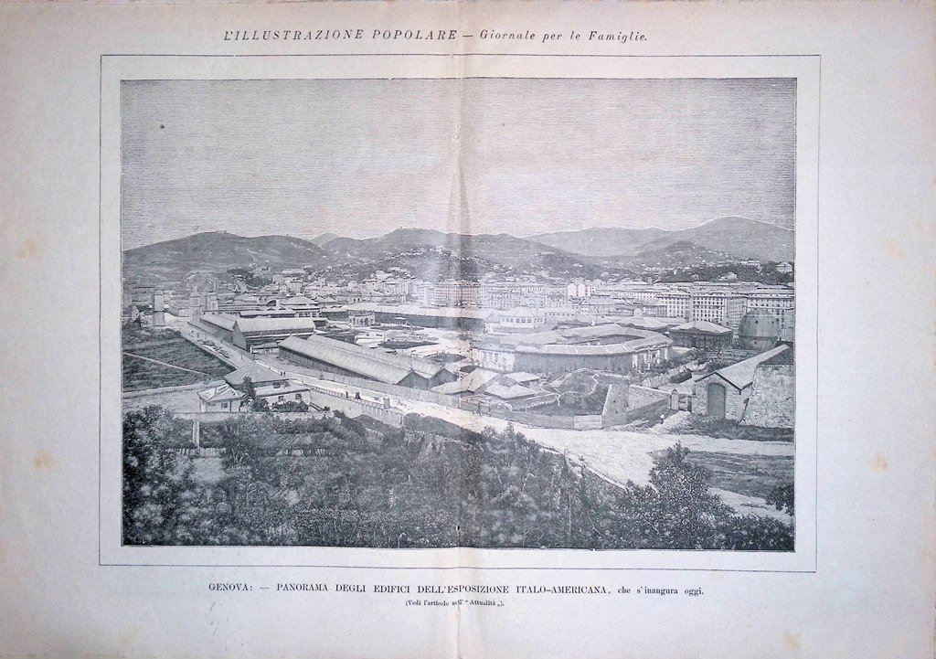 Genova - panorama degli edifici dell'esposizione italo-americana che si inaugura oggi (stampa a 2 pagine)