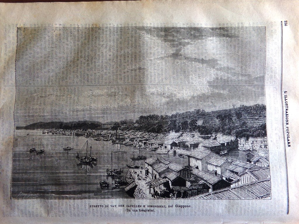 Stretto di Van Der Capellen (Kanmon) e Simonoseki (Shimonoseki) nel Giappone (Stampa)
