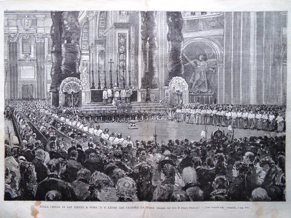 Nella chiesa di San Pietro a Roma: Leone XIII celebra la messa (Dante Paolocci) (stampa in 2 pagine)