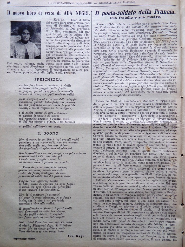 L'Illustrazione Popolare 12 Febbraio 1914 Negri Deroulede Interpreti D'Annunzio