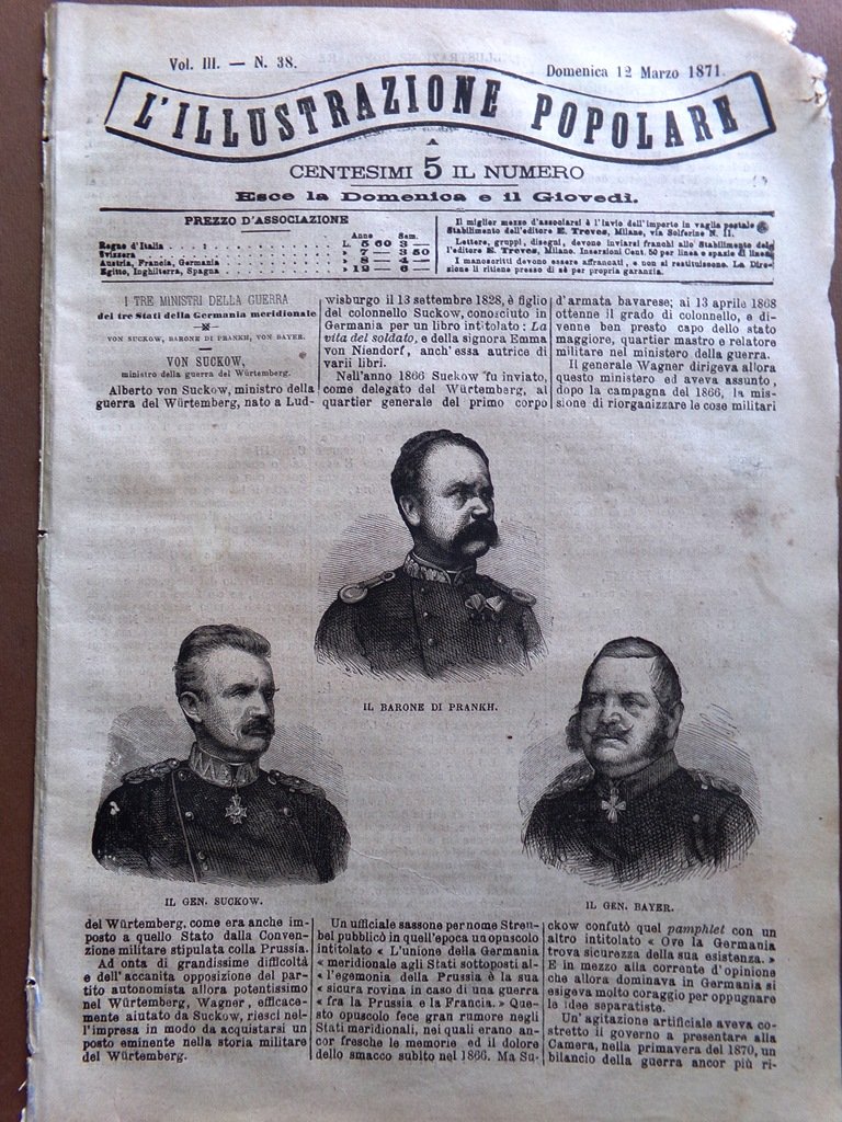 L'illustrazione Popolare 12 Marzo 1871 Havre Lago di Agnano Suckow Prankh Bayer