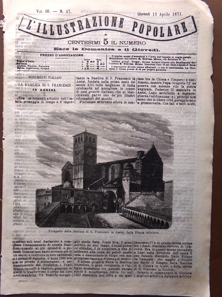 L'illustrazione Popolare 13 Aprile 1871 San Francesco Assisi Pergolese Legouvé