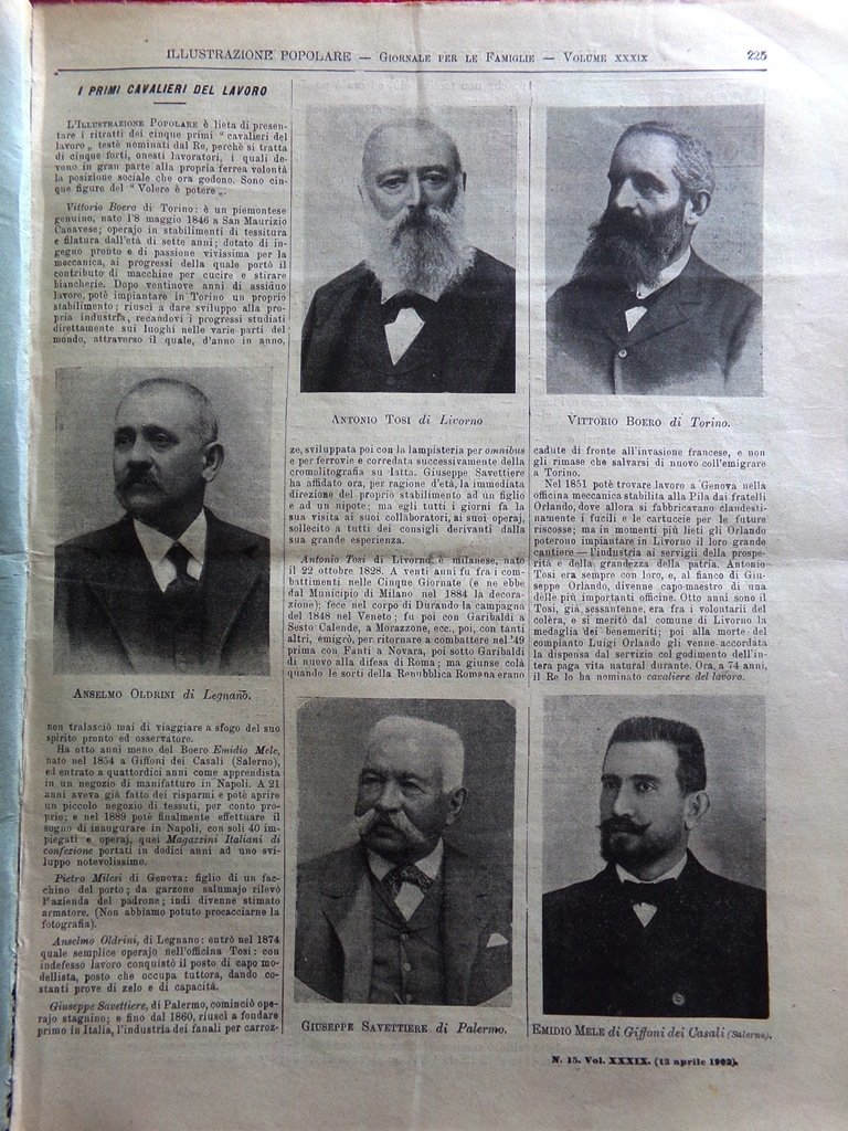 I primi cavalieri del lavoro - Anselmo Oldrini di Legnano, Antonio Tosi di Livorno, Vittorio Boero di Torino, Giuseppe Savettiere di Palermo, Emidio Mele di Giffoni dei Casali