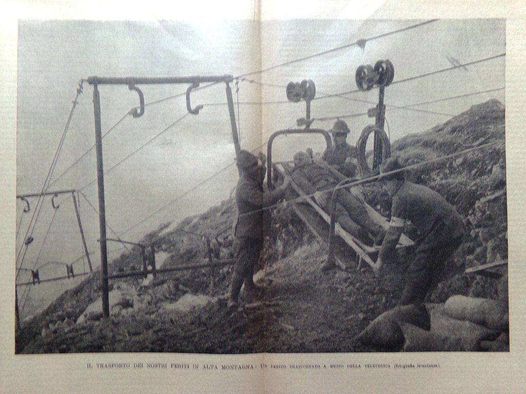Il trasporto dei nostri feriti in alta montagna - un ferito trasportato a mezzo della teleferica (fotografia in 2 pagine)