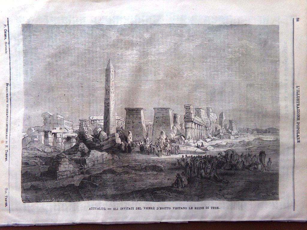 Gli invitati del vicerè d'Egitto visitano le ruine di Tebe (stampa)