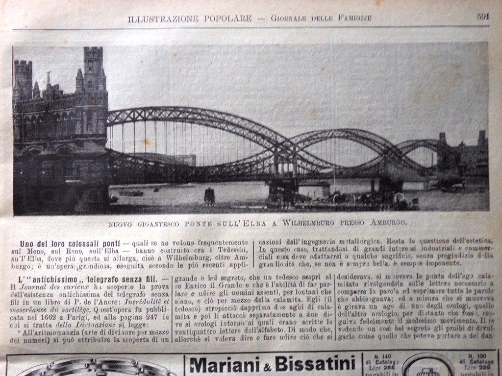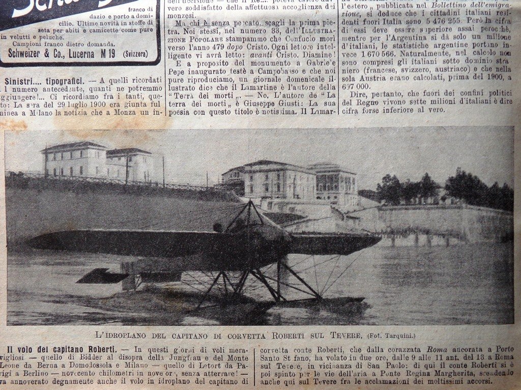 Curiosità: l'idroplano del capitano di corvetta Roberti sul Tevere, nuovo ponte sull'Elba a Wilhelmburg presso Amburgo