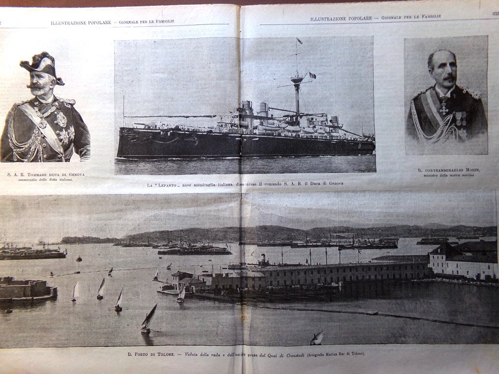 Il porto di Tolone, il duca di Genova, la Lepanto, il contrammiraglio Morin (Stampa a 2 pagine)