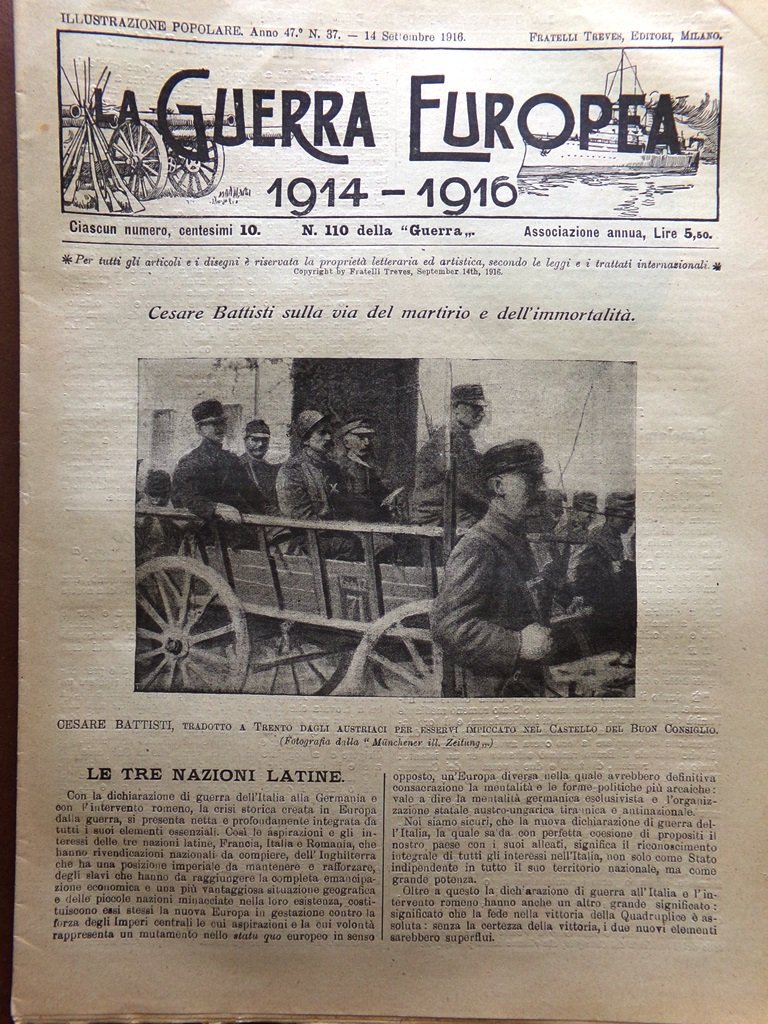 L'Illustrazione Popolare 14 Settembre 1916 WW1 Cesare Battisti Chinotto Romania