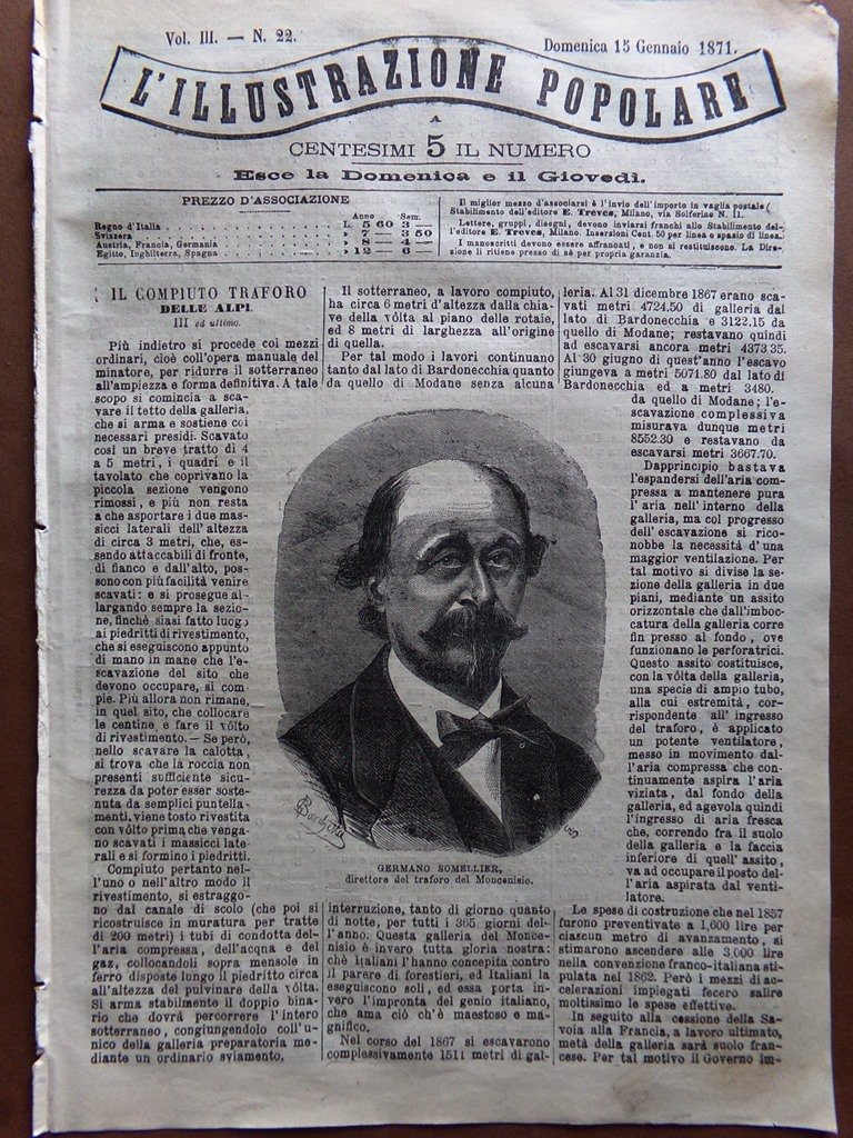 L'illustrazione Popolare 15 Gennaio 1871 Traforo Alpi In Australia Legnago Lione