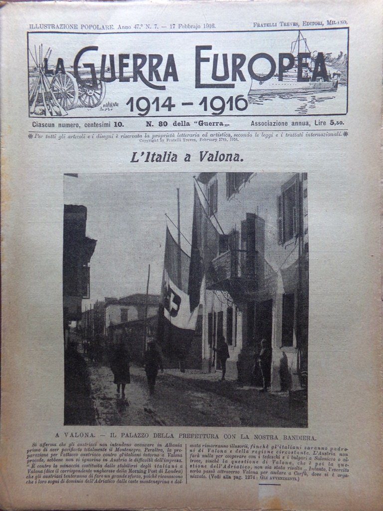 L'Illustrazione Popolare 17 Febbraio 1916 WW1 Valona Col di Lana Jolanda Parigi
