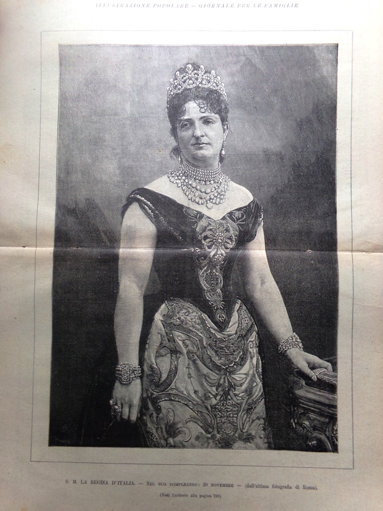 La regina d'Italia Margherita nel suo compleanno (Stampa a 2 pagine)