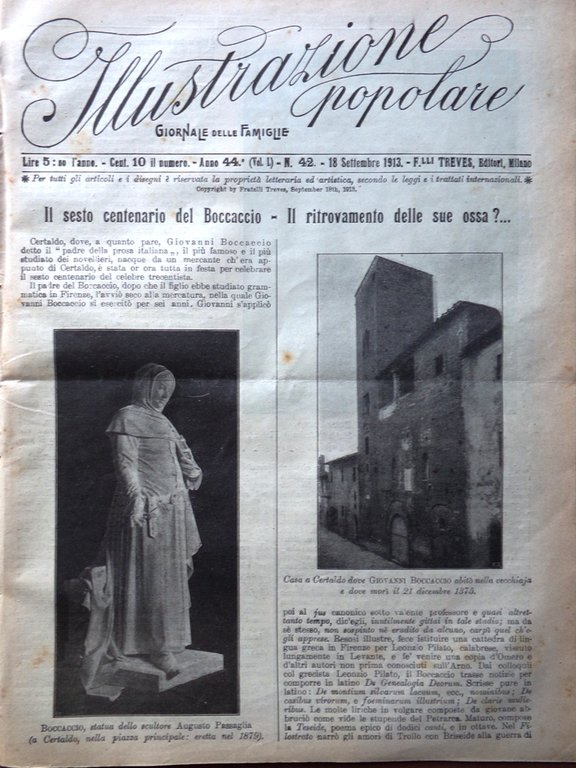 L'Illustrazione Popolare 18 Settembre 1913 Centenario del Boccaccio Villa Giulia
